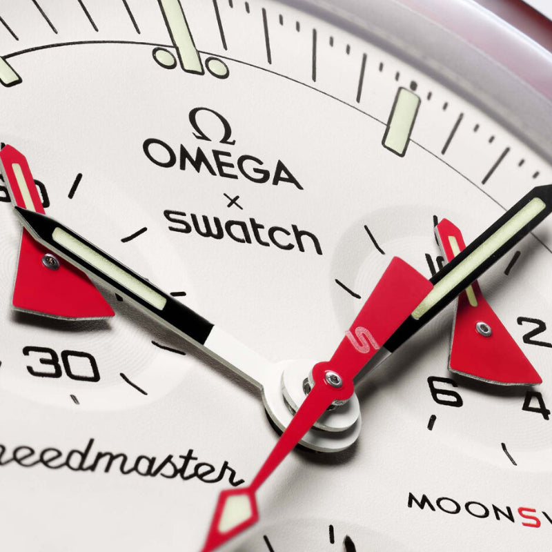 In 2022, OMEGA and Swatch surprised the world by reinterpreting the legendary OMEGA Speedmaster Moonwatch — the first watch ever worn on the Moon — in an innovative edition. This unexpected and bold collaboration gave rise to a line of chronographs that quickly captured a global audience with their universe-inspired design. Crafted from the revolutionary Bioceramic material and retaining the iconic features of the Speedmaster Moonwatch, these watches have become an accessible and modern way to celebrate a true classic of watchmaking.