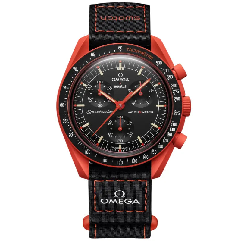 In 2022, OMEGA and Swatch surprised the world by reinterpreting the legendary OMEGA Speedmaster Moonwatch — the first watch ever worn on the Moon — in an innovative edition. This unexpected and bold collaboration gave rise to a line of chronographs that quickly captured a global audience with their universe-inspired design. Crafted from the revolutionary Bioceramic material and retaining the iconic features of the Speedmaster Moonwatch, these watches have become an accessible and modern way to celebrate a true classic of watchmaking.