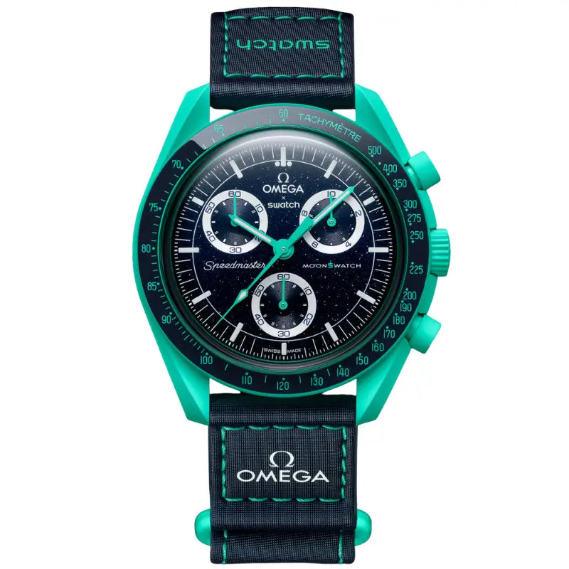 In 2022, OMEGA and Swatch surprised the world by reinterpreting the legendary OMEGA Speedmaster Moonwatch — the first watch ever worn on the Moon — in an innovative edition. This unexpected and bold collaboration gave rise to a line of chronographs that quickly captured a global audience with their universe-inspired design. Crafted from the revolutionary Bioceramic material and retaining the iconic features of the Speedmaster Moonwatch, these watches have become an accessible and modern way to celebrate a true classic of watchmaking.