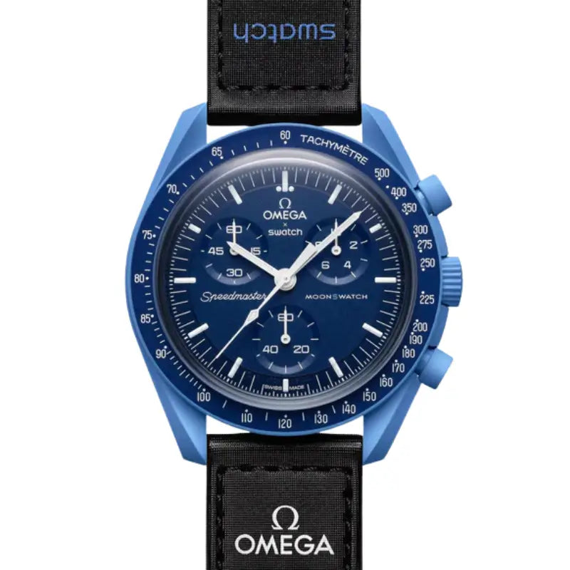In 2022, OMEGA and Swatch surprised the world by reinterpreting the legendary OMEGA Speedmaster Moonwatch — the first watch ever worn on the Moon — in an innovative edition. This unexpected and bold collaboration gave rise to a line of chronographs that quickly captured a global audience with their universe-inspired design. Crafted from the revolutionary Bioceramic material and retaining the iconic features of the Speedmaster Moonwatch, these watches have become an accessible and modern way to celebrate a true classic of watchmaking.
