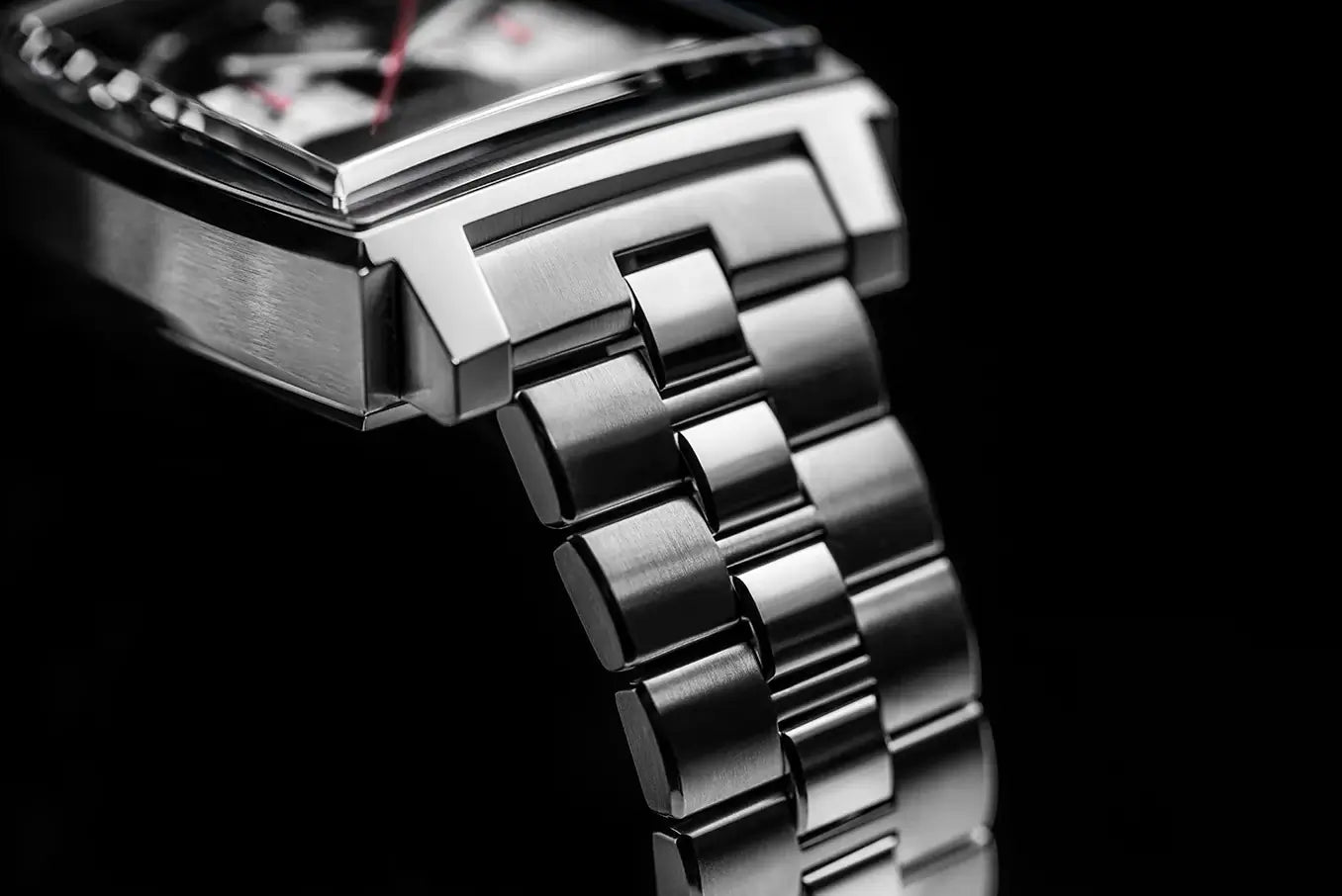 A striking new look achieved through the reinterpretation of the metal bracelet, inspired by the early 1970s Monaco watches. The original steel bracelet has been redesigned to meet contemporary standards while offering enhanced comfort.